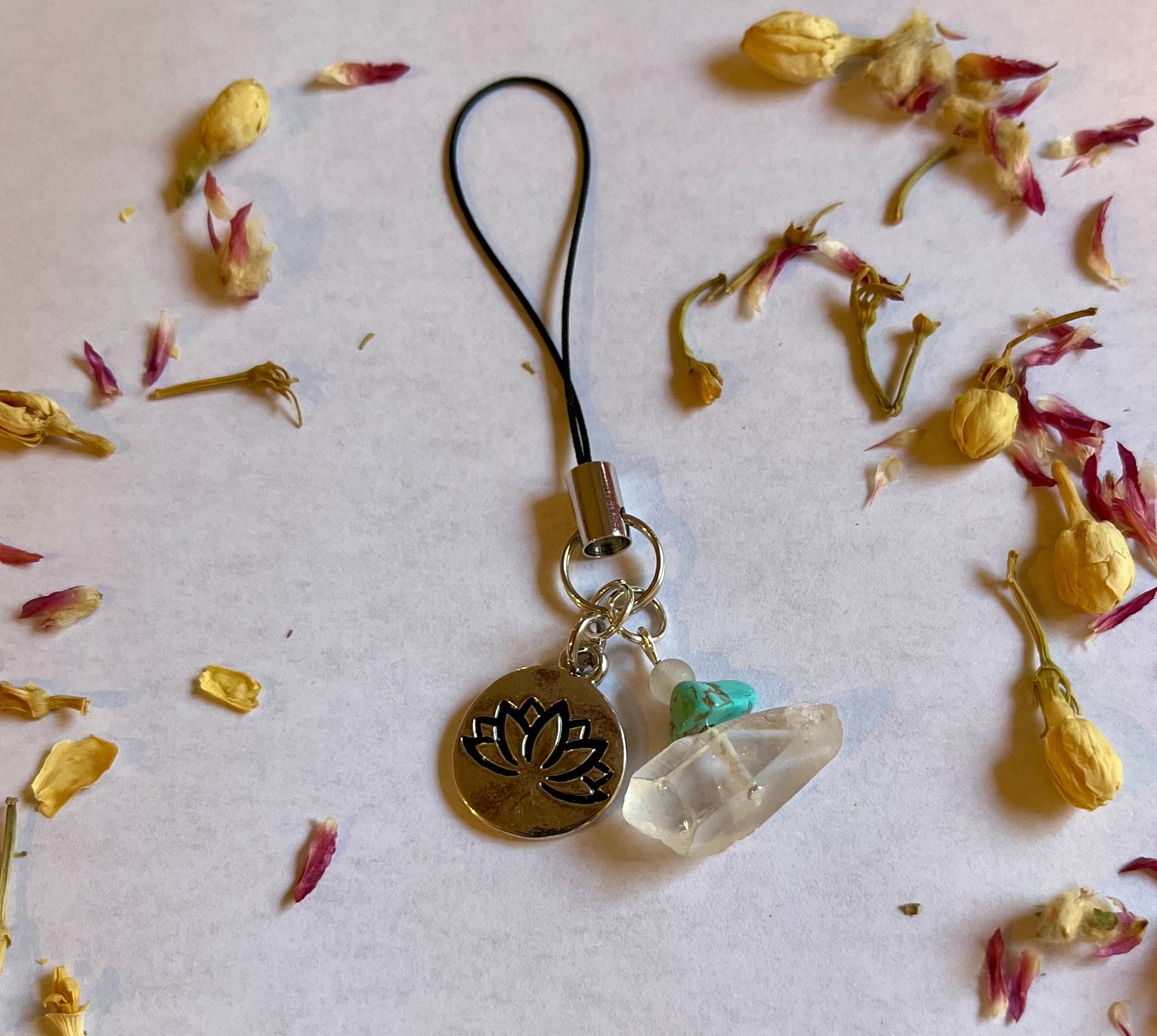 Blue Howlite, Quartz, and Charm Phone and Keychain.