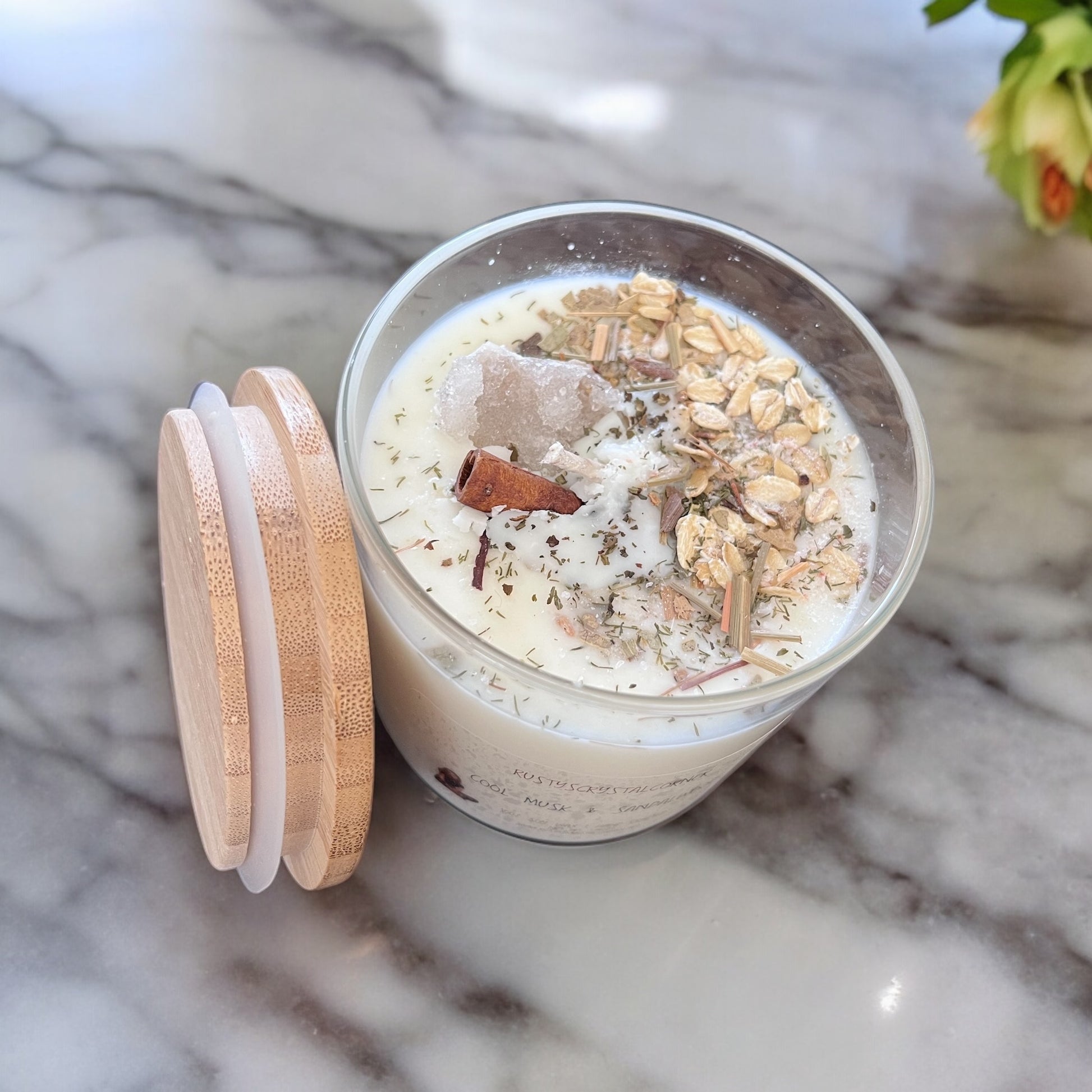 Our handcrafted Love Manifestation Candle brings light and love in family, romance and relationships. All candles are made with Raw Crystals, sands, herbs, oils, soy wax and only the purest intentions. May your candle bring you an abundance of blessings.